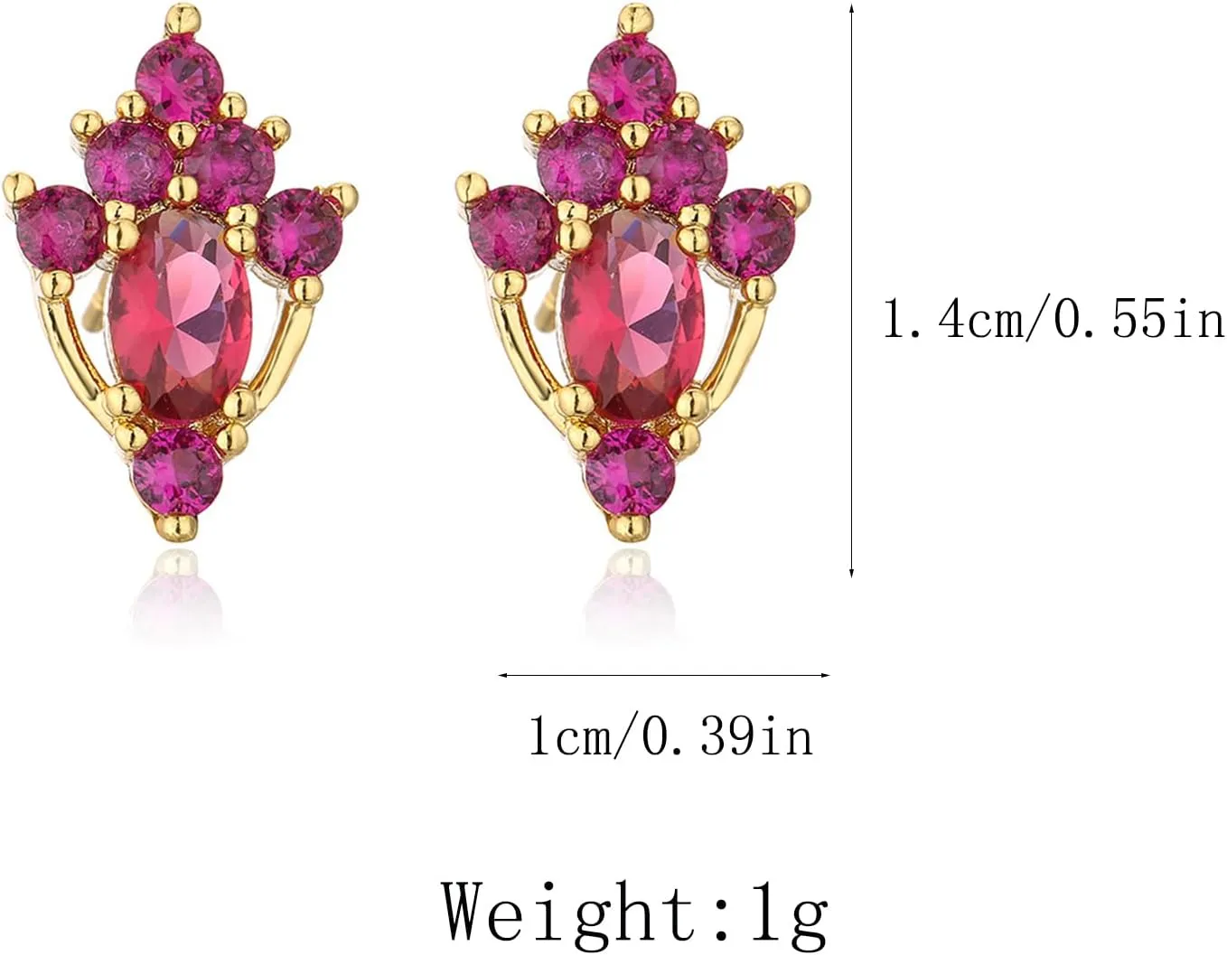 Size--Our exquisite small earrings are 0.59 inches (15mm) high, 0.39 inches (10mm) wide, and weigh 2 grams. The lightweight flat back earrings won't make you feel heavy, so these sizes are just right for your ears and can add charm to you. We also embedded colorful cubic zirconia on the earrings, which makes them look even more shiny