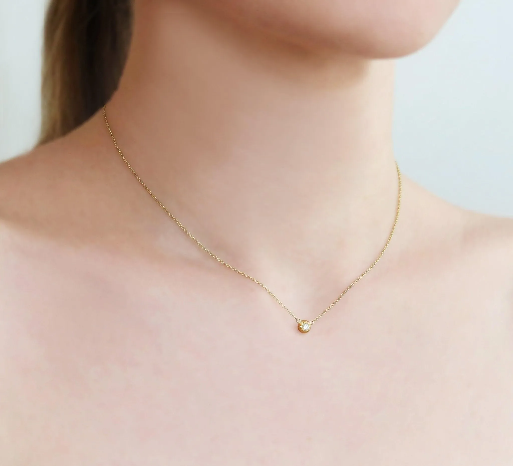 20 Karat Yellow Gold Extra Mini Star-Set Diamond Granule Necklace on 18K Fine Chain with Lobster Clasp (0.05 ct). Necklace length is 16".Handcrafted with a soft satin finish.