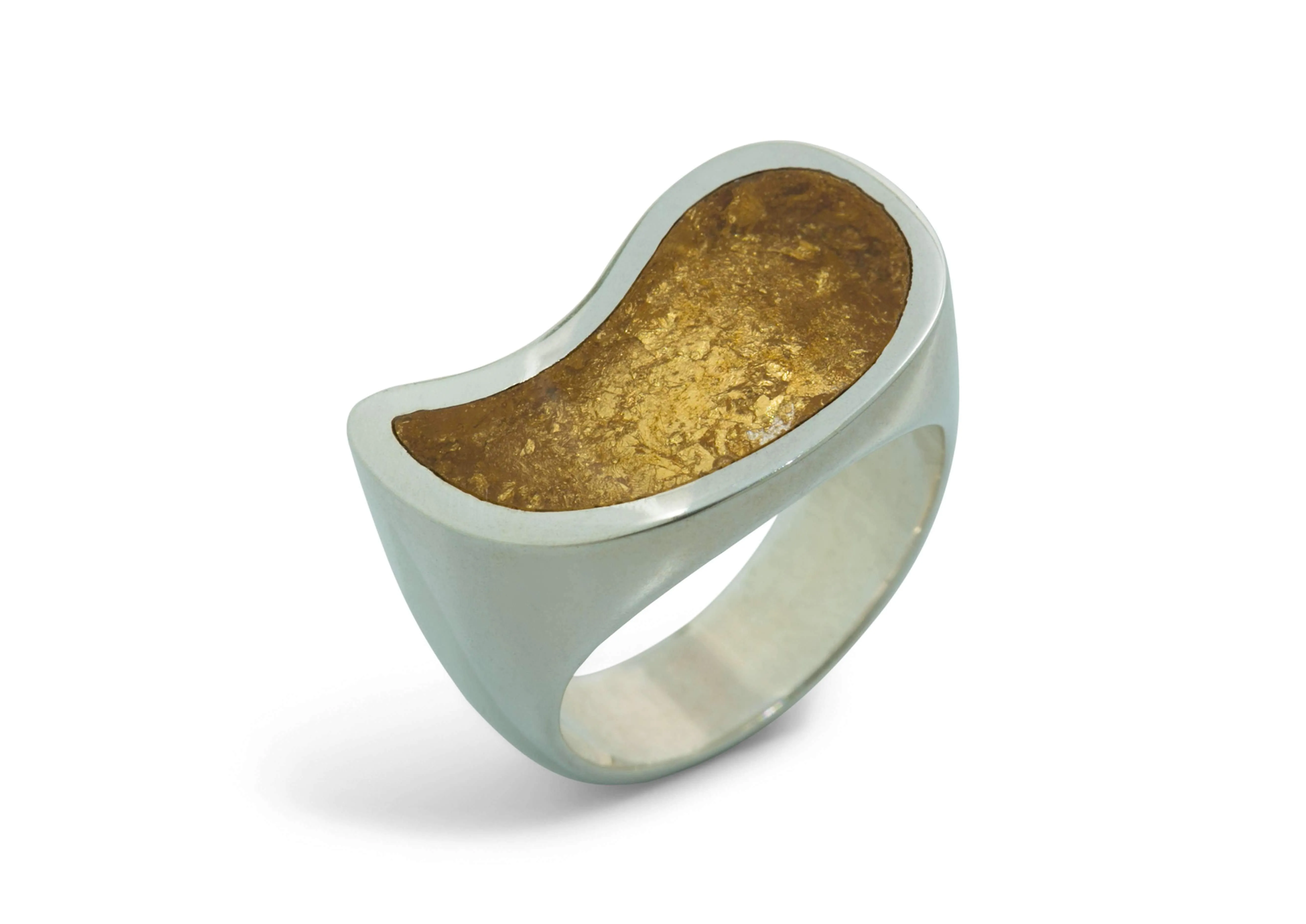 Rich in gold, these flowing resin rings are dressed with only the purest of British gold. Pure 24ct gold has been layered with hard wearing resin into a bold signet style ring.
