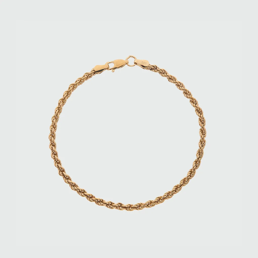 An 18ct Yellow Gold Vermeil (18ct Gold on Sterling Silver) twisted rope chain bracelet securely fastened with a lobster claw clasp.
