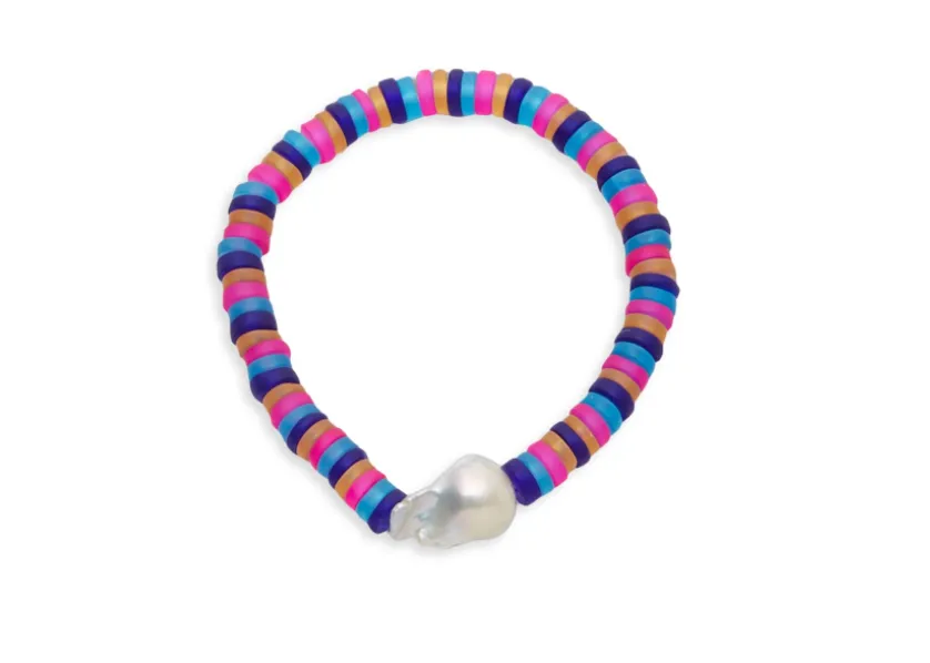 Threaded with multicolored glass rondelles, Lele Sadoughi's Camilo bracelet is accented with a radiant white freshwater baroque pearl. A vibrant piece that adds a bold touch to any ensemble.