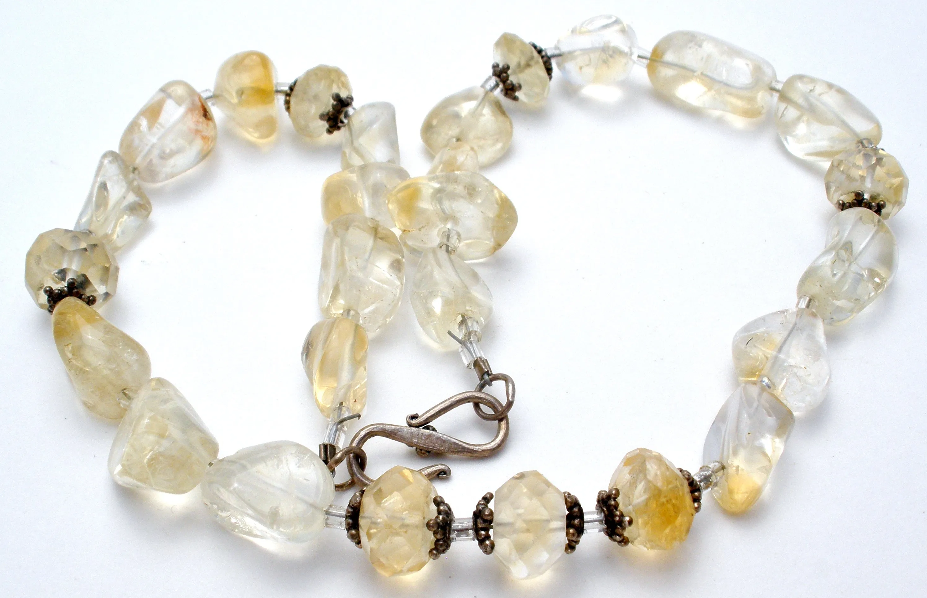 Vintage Beaded Jewellery - This is a strand of clear and yellow gold champagne crystal quartz beads with sterling silver spacer and clasp.