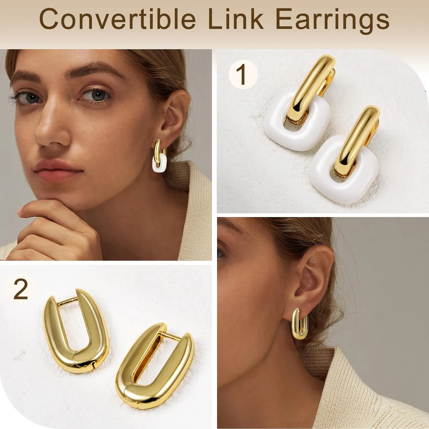 - Detachable Link Hoops : Our white earrings keep up with the latest fashion trends, creating a unique charm just for you. Two-in-one huggie earrings, wear it with or without the extra link hoop. Perfect for daily wear and versatile enough to complement various occasions