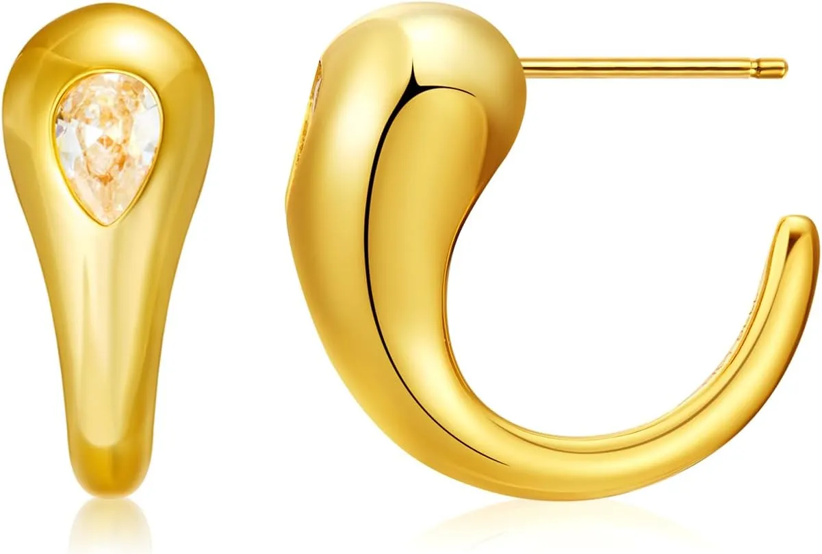 These Cicy Bell women's earrings feature synthetic teardrop shaped cubic zirconia in a rugged yet sophisticated design. The stud earring style is both stylish and versatile, making them perfect for gifts and adding a touch of sparkle to the wearer.
