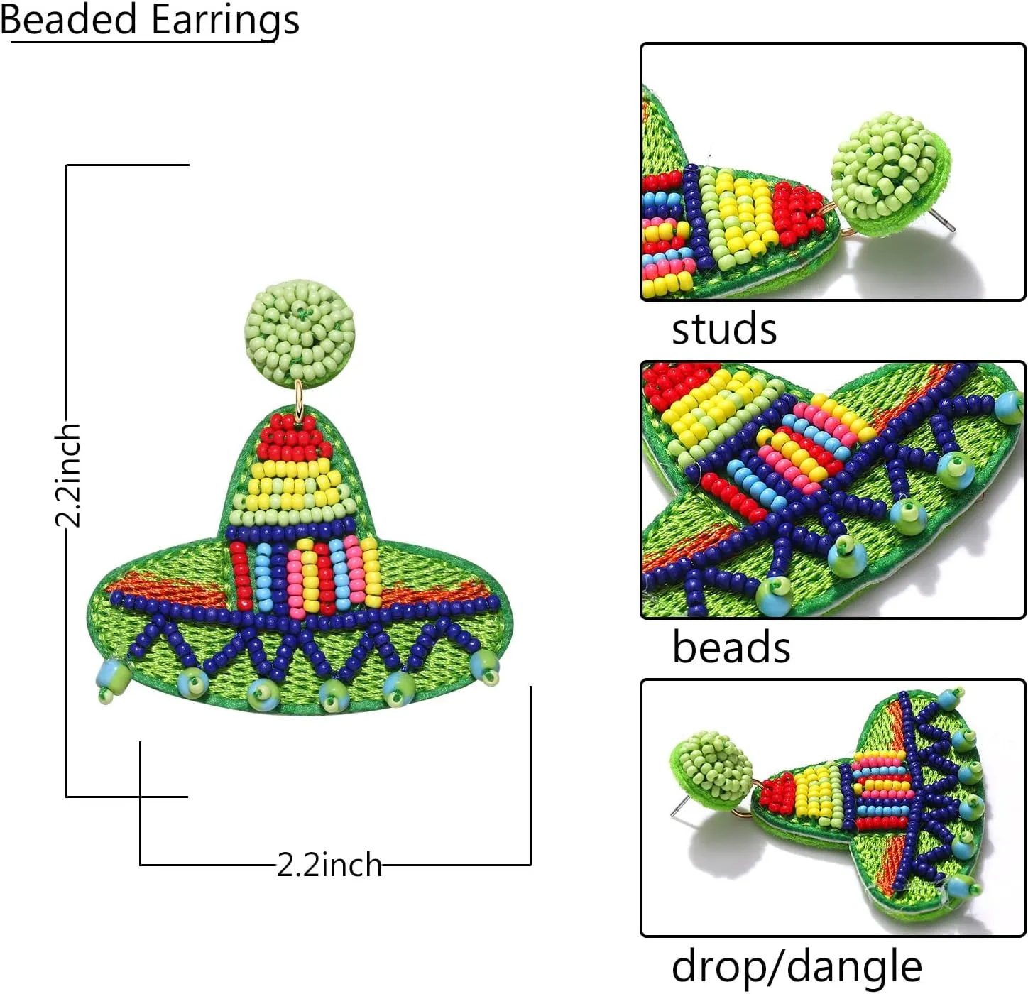 - Comfortable To WearThese handmade sombrero dangle earring are made of high quality glass beads and felt back, nickel free, lead free, lightweight and durable, you can wear these statement beaded drop earrings multiple times, it will not hurt your skin, can provide you a comfortable wearing experience.No Mexican fiesta would be complete without a Sombrero ,so add this sombrero or hat chili pepper to your Cinco de Mayo decorations! It's sure to be a hit with party-goers of all ages!