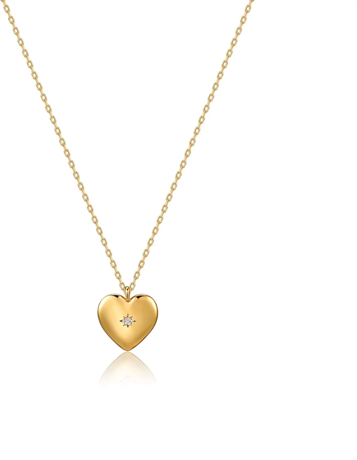 - PREMIUM MATERIAL- This necklace is 14k gold plated and handcrafted from high quality brass. A 5A cubic zirconia stone sparkles in the middle of the love heart, which can ensure long-term color fastness, that is, nickel-free, lead-free and hypoallergenic. You can wear it every day to show your love elegantly.