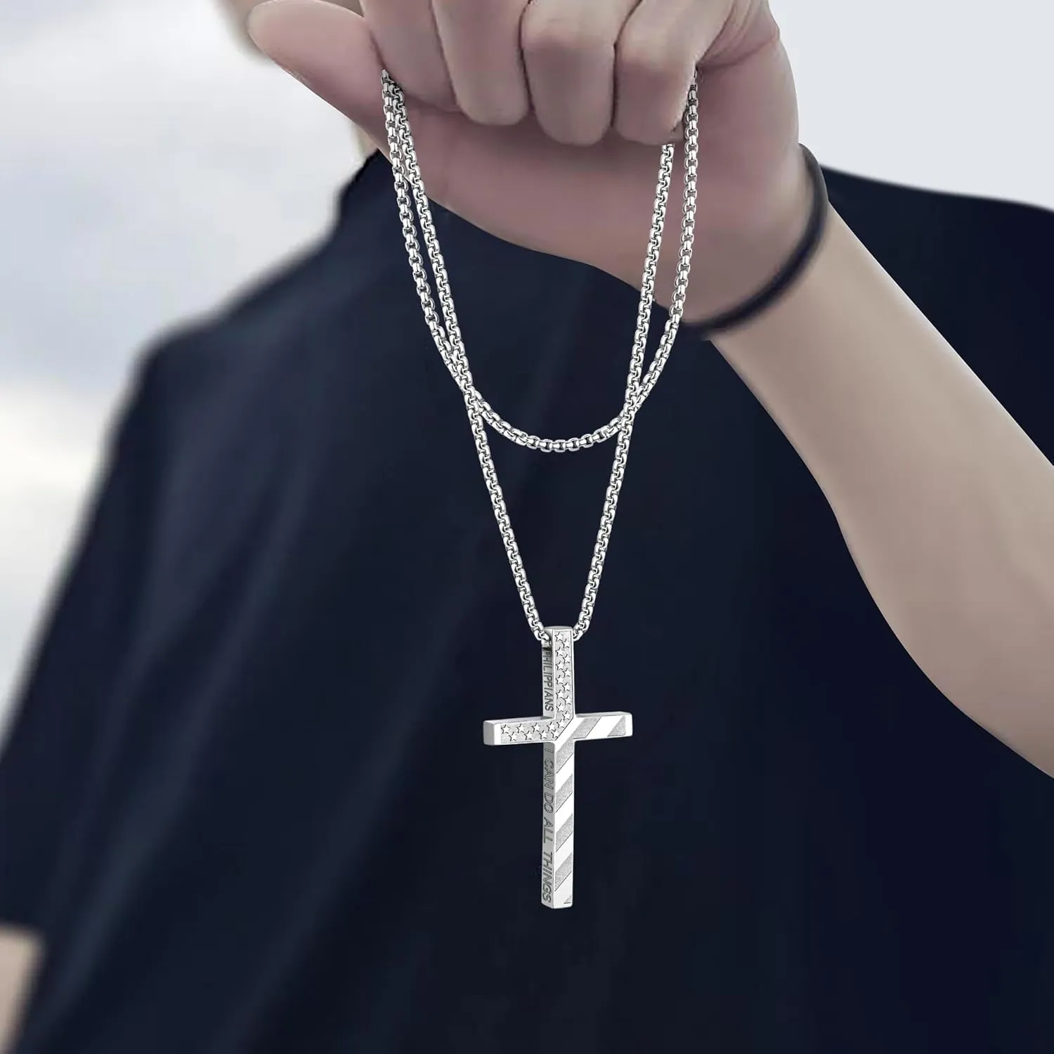 - Cross Chain for Men- Christian cross necklace for men made of 316L surgical steel, no allergy, no fading, no distortion, corrosion resistance, wear resistance, no special maintenance, never turn green or black, chain and lobster clasp durable and sturdy not easy to break.