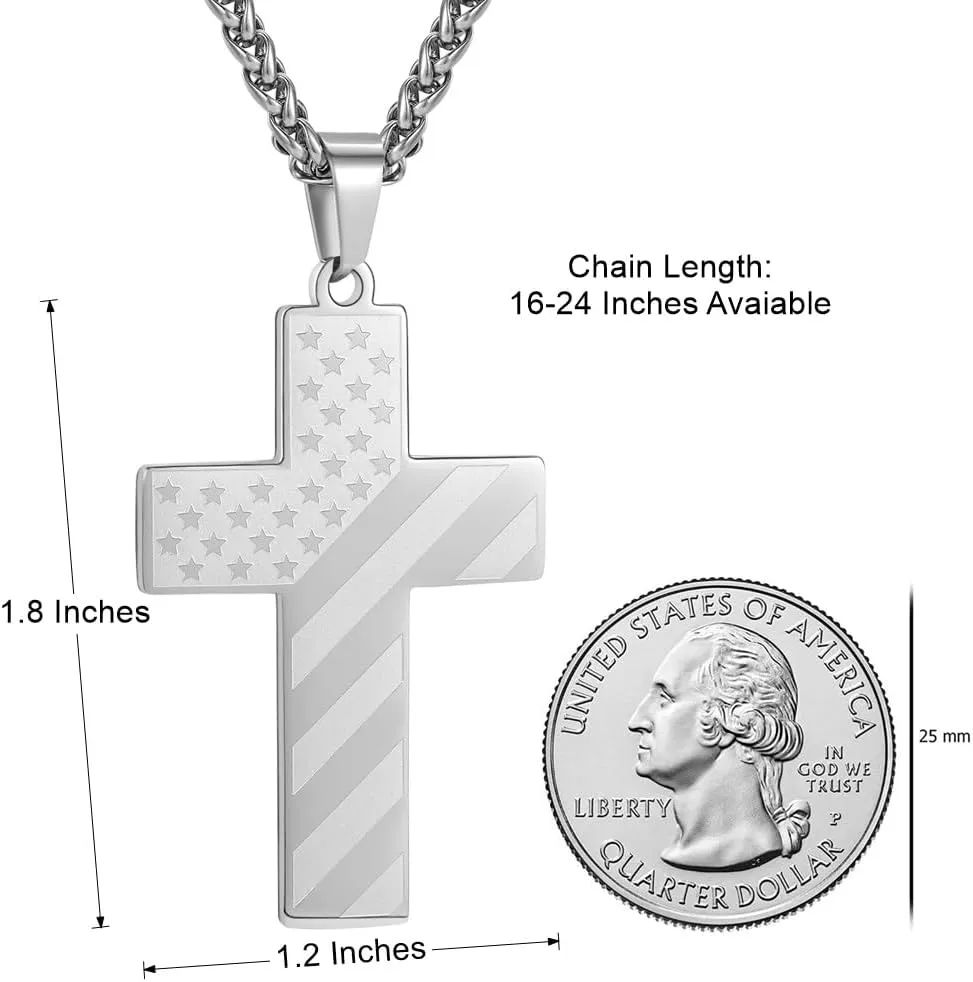 - LOVELY GIFT IDEAS : This American flag cross necklace is packaged well in a gift box. It comes with everything you need to give the perfect gift including a gift box and message card. This faith stainless steel cross necklace is perfect Gift for men, father, friend, brother, son on sweet 16, birthday, Christmas, Easter, Independence Day, baptism, christening, first communion!