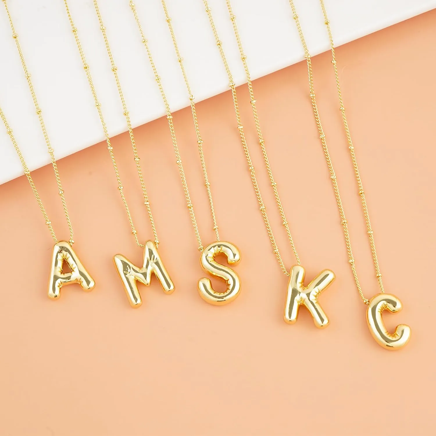 Cute Bubble Letter Necklace Balloon Initial Name Necklaces for Women Dainty Gold Initial Charm Pendant 14K Gold Plated Trendy Chunky Jewelry Gift