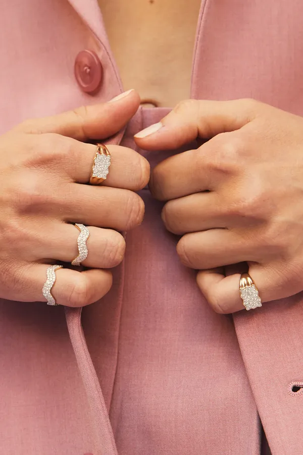 Our 14K gold Diamond Form Signet Ring is our new favorite eye catcher! This contemporary design features a wavy frame adorned with pave diamonds. Whether you choose to wear it on your pinky or pointer finger, it is guaranteed to get some attention. Pair this beauty with our Mixed Link Necklace!