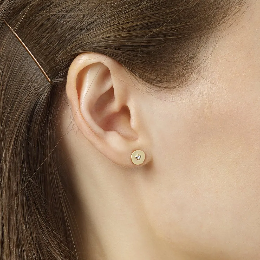 When shopping for diamond earrings you won't find a better pair than Helen Ficalora's gorgeous Flat Diamond Stud Earrings. Made with 14K solid gold, each diamond disc earring is also graced with a single precious diamond to complete this delicate look and will look stunning when worn alone or beside your other favorite diamond or gold styles. Available in 14K yellow gold, 14k white gold, or 14K pink gold, these earrings are always lovingly crafted in New York and available in a pair or as a single earring so you can customize your wear to the look you're already dreaming of.