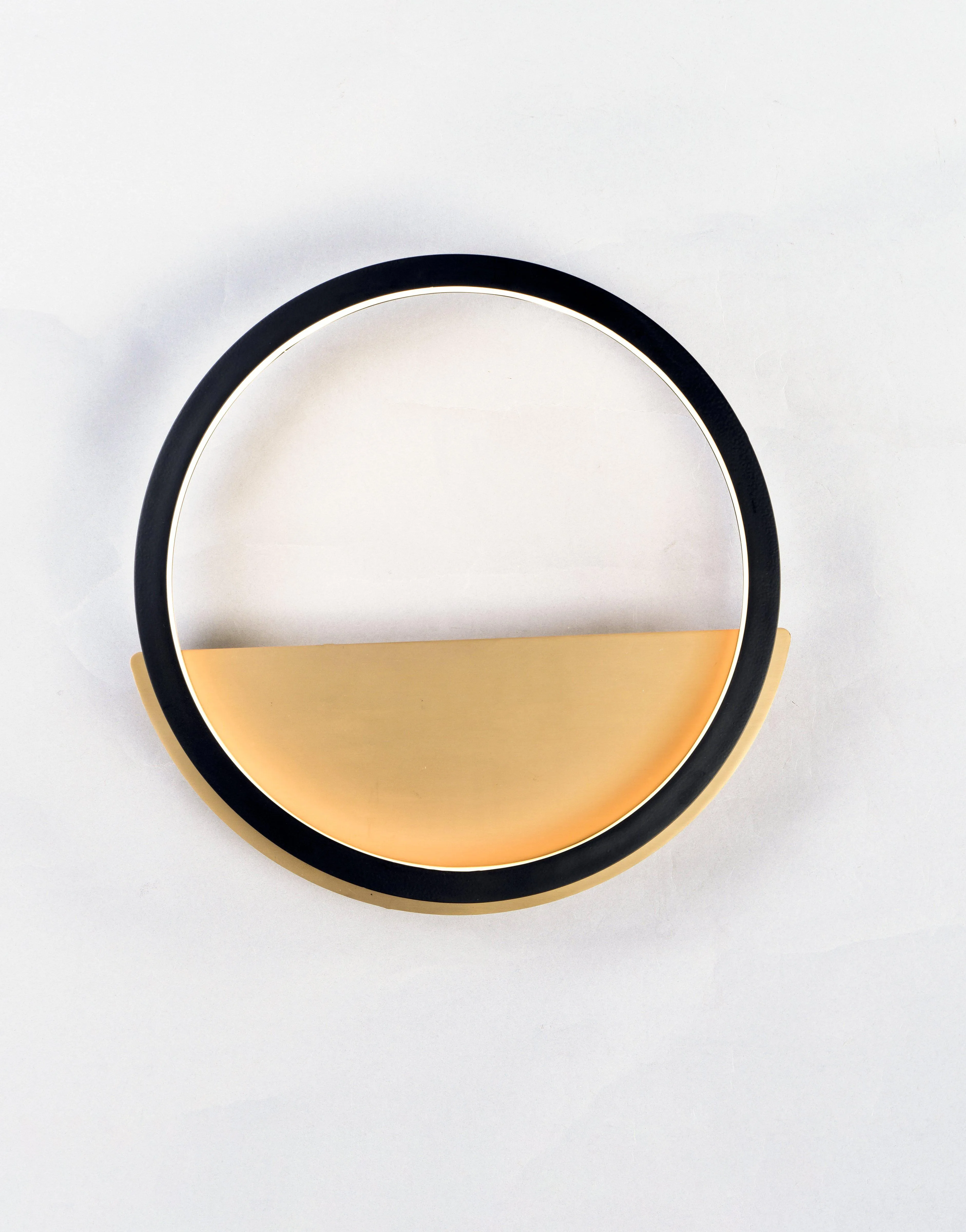 Rings of various sizes finished in Black are supported from a column of soft Gold. This European classic is a soft contemporary design which works in today's home decor.