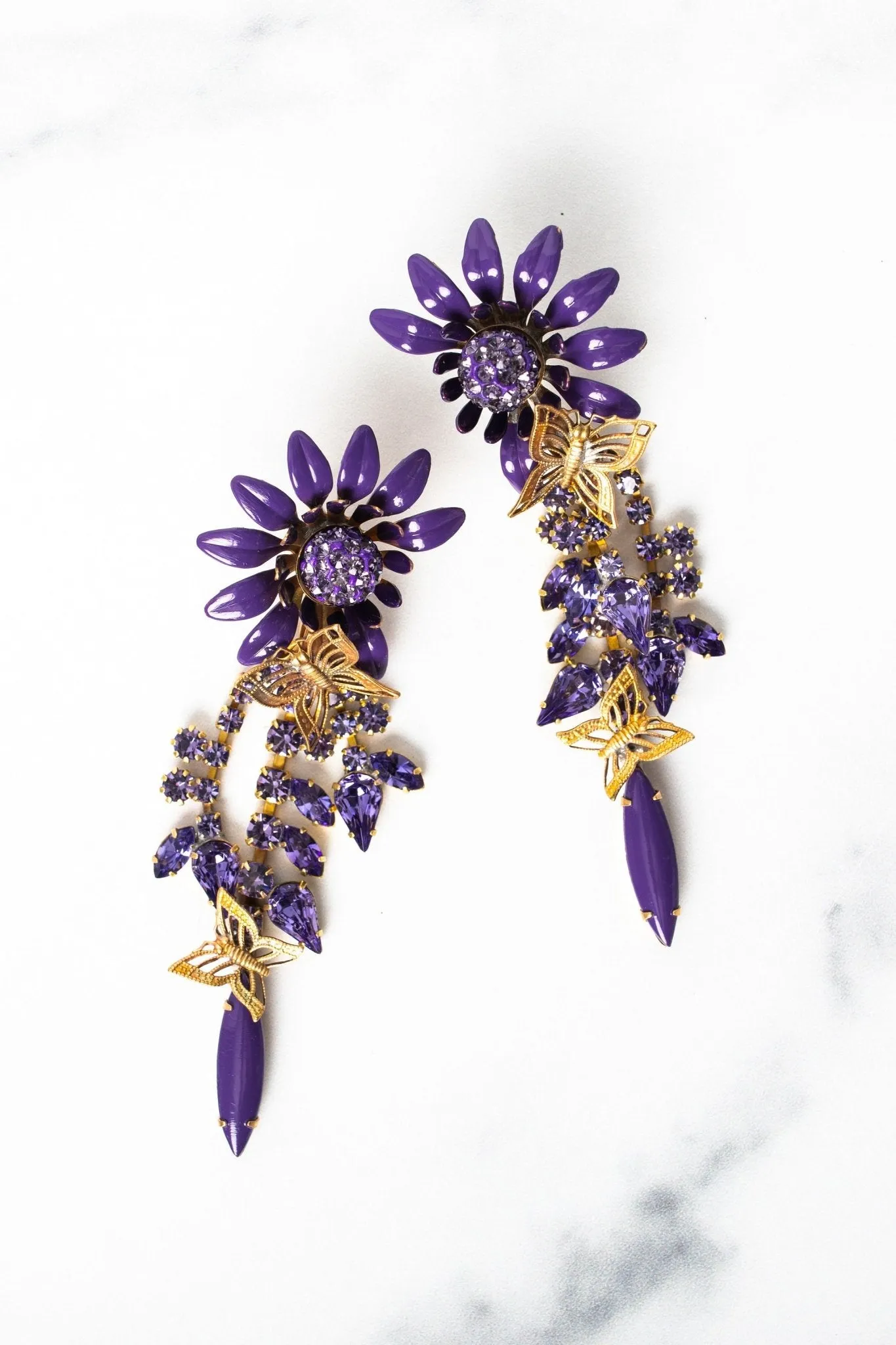 Why take beautiful blooms from your cutting garden when you can enjoy nature's beauty with these Sutton Earrings? Featuring colorful flowers with glittering centers and finished with crystal leaf details, the Sutton Earrings truly are showstoppers. Available in Blue, Pink and Purple. Premium Austrian & Czech Crystals, Acrylic Beads, 24kt Gold Plate, Post Closure, Proudly Made in the USA. 3.75" Long