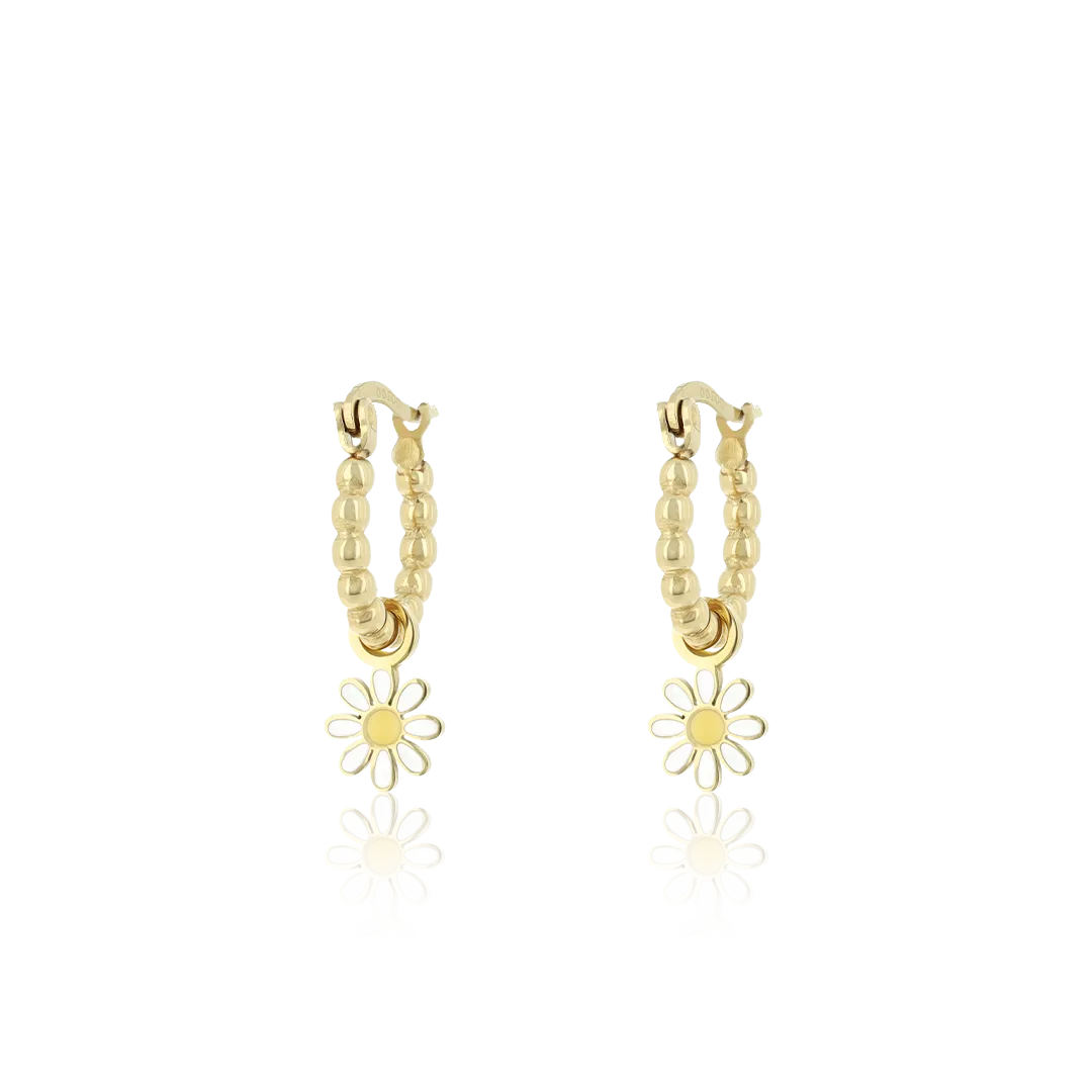 Introducing OOZOO Jewellery Earrings, the perfect accessories to add a touch of elegance and style to any outfit. These gold coloured hoop earrings are designed specifically for ladies who appreciate sophisticated and timeless jewellery. Crafted with high-quality stainless steel, these 24 mm earrings offer durability and long-lasting beauty. Each earring (16 mm) is adorned with a flower charm (8 mm), which adds a touch of whimsy and fun to the overall look. To ensure your satisfaction, OOZOO Jewellery offers a 3 months-warranty on all jewellery, providing you with peace of mind and confidence in your purchase.