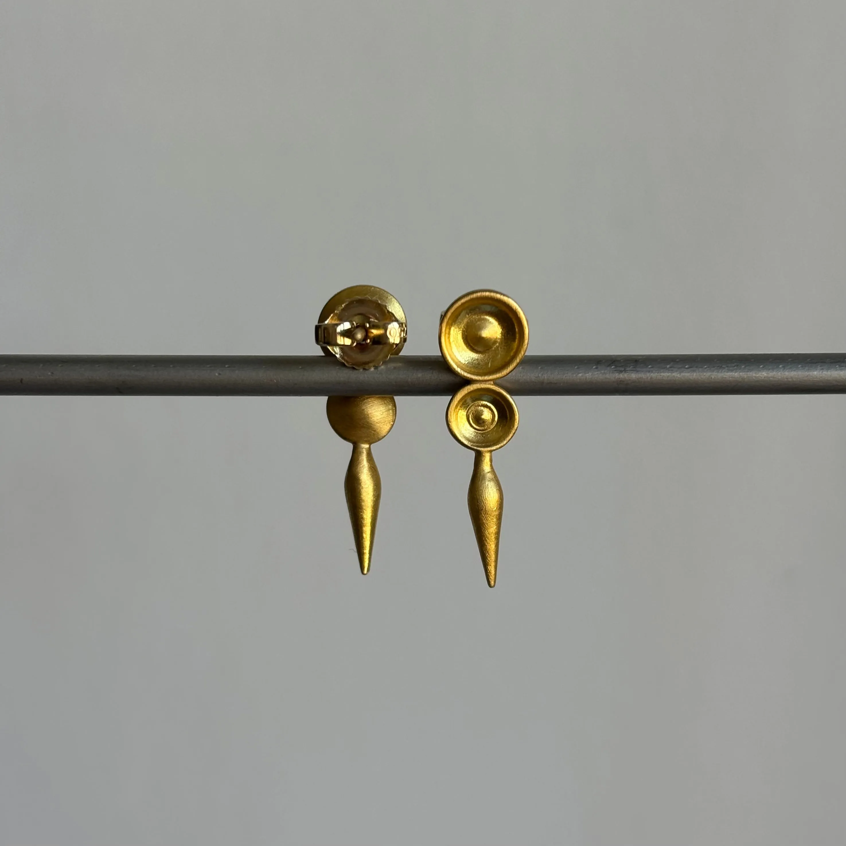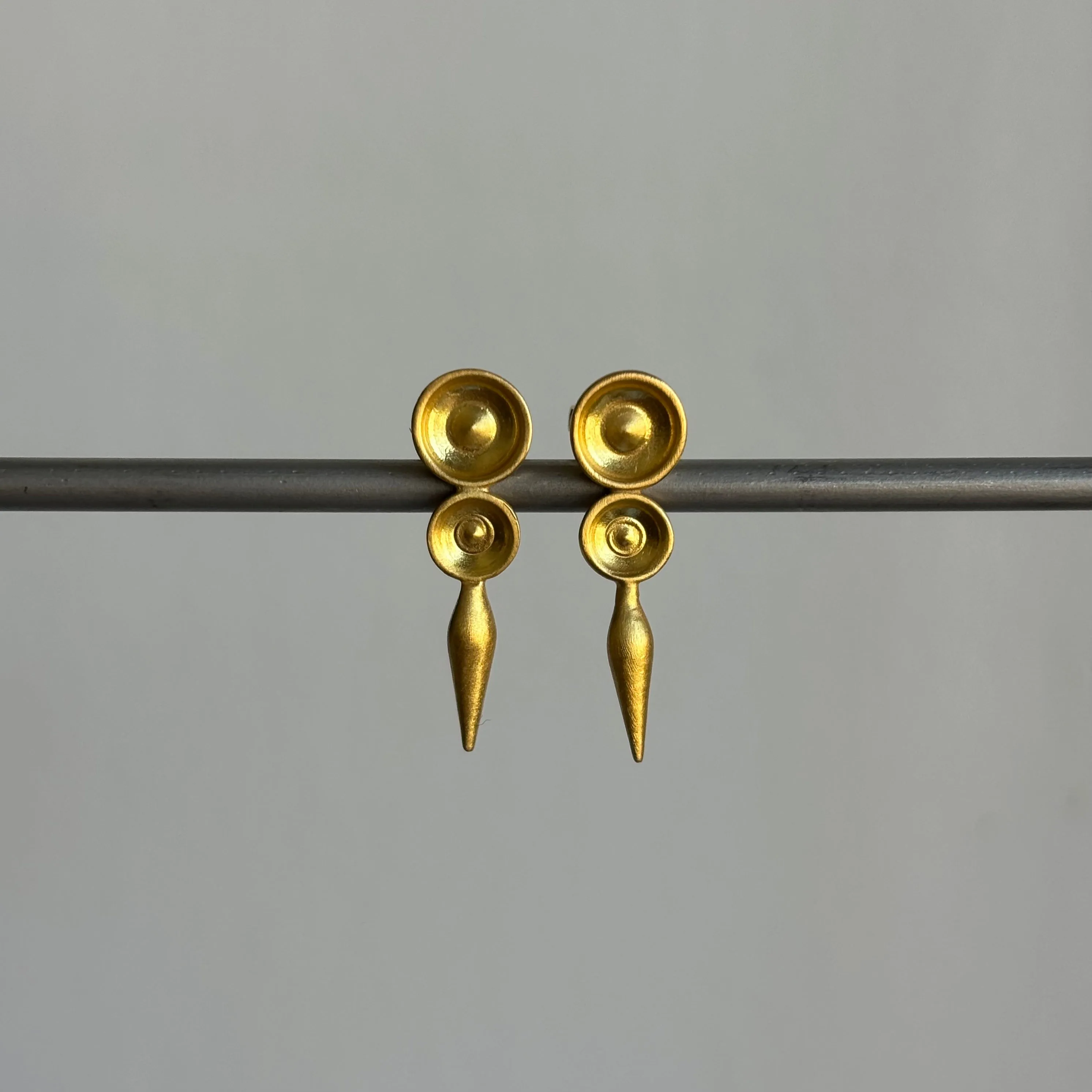 Sophisticated gold earrings inspired by the ancients: a wearable play on geometry.