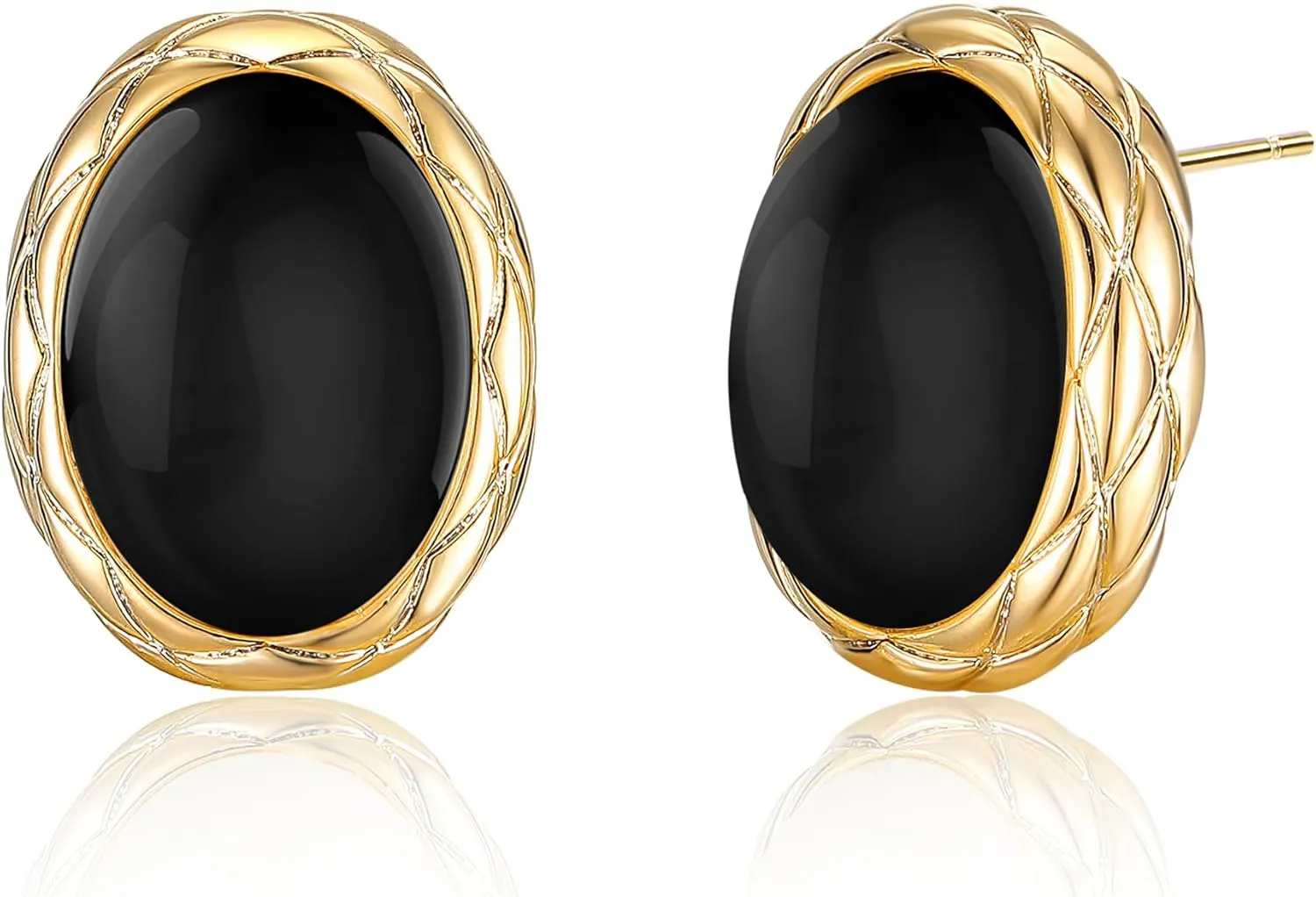 - Elegant Design: Gold earrings feature a striking black stone set at the center, creating a sophisticated and minimalist look that complements any style