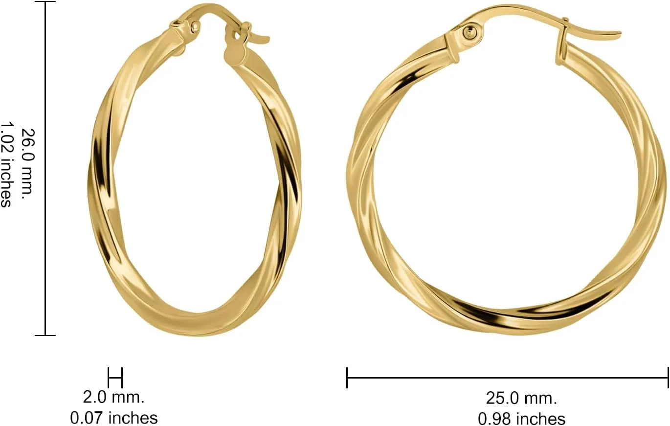 - STYLISH SLEEK TWIST HOOP EARRINGS These twisted hoop earrings offer a sophisticated blend of modern and classic style. The sleek, textured design adds a touch of uniqueness, making them stand out from traditional hoops. Hoops & Loops jewelry is manufactured in our own factory, with a proud commitment to the high standards of jewelry artistry.