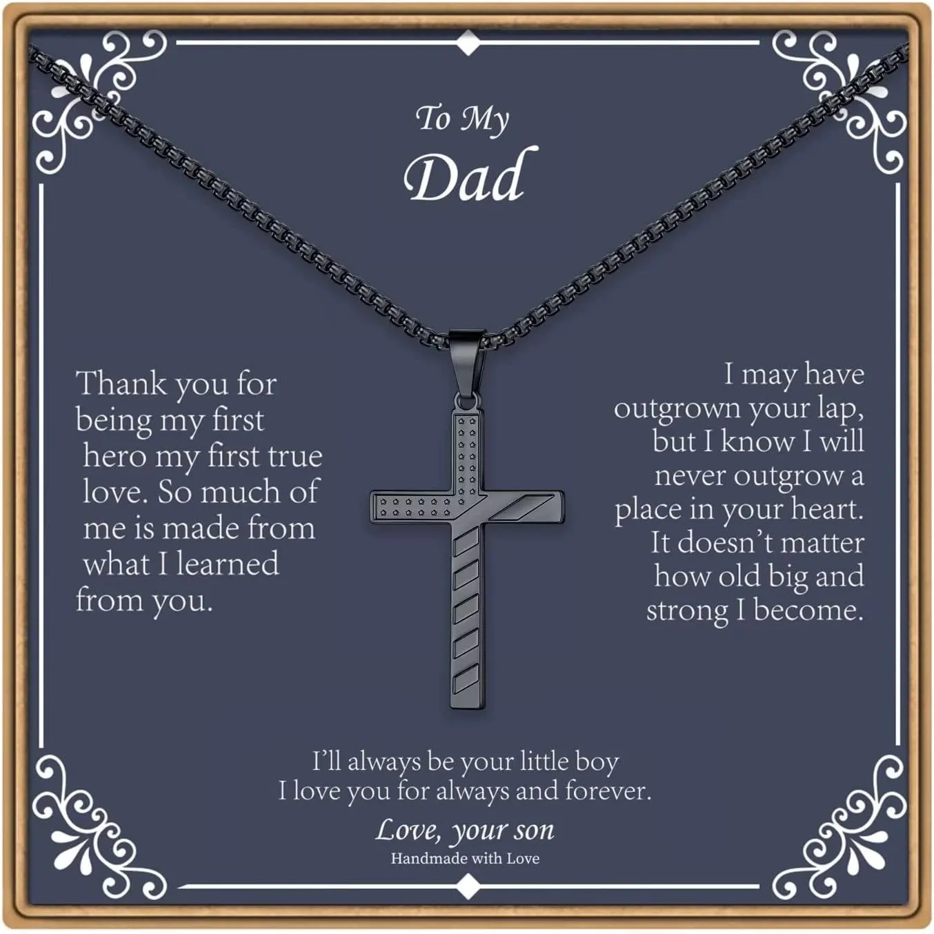 - GIFT IDEA: Classic cross design with box chain. Perfect gifts for your dad, grandpa, step dad, father-in-law, uncle, son, grandson on Father's Day, Christmas and other special occassion.