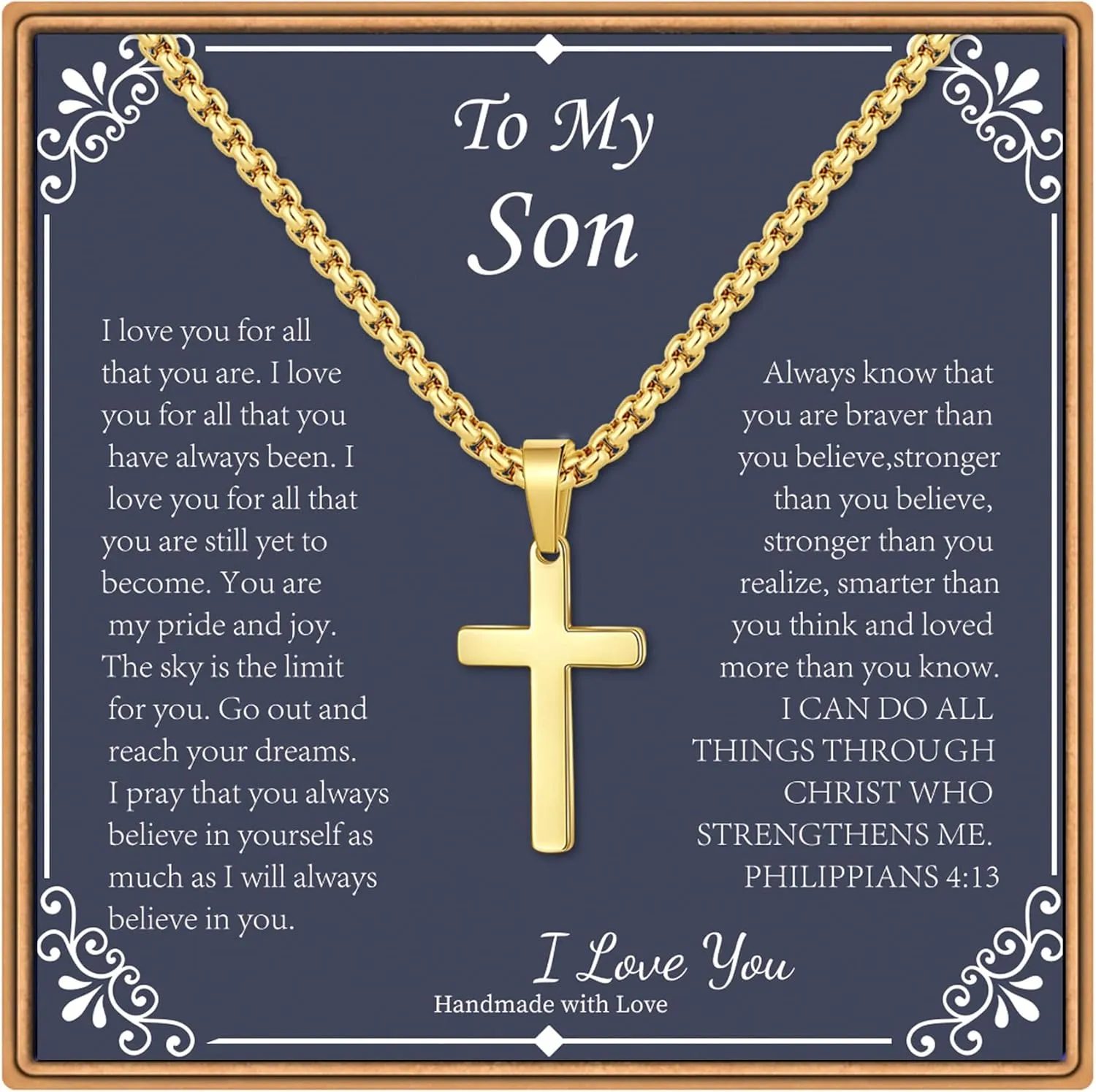 - GREAT RELIGIOUS GIFTS FOR SON: Being a People of God is a High Calling that Christian People Should Aspire For. The cross is a sign of Christianity, representing love and redemption. The cross necklace comes with a special card, perfect gifts for your son.