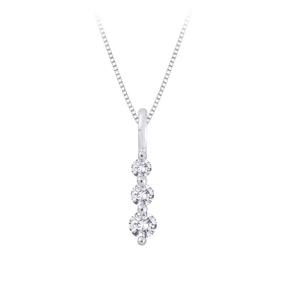 Three diamonds, representing yesterday, today, and tomorrow, take center stage in this trendy pendant. The diamonds sparkle from a minimalist white gold setting which enhances the look. And at that price you cant resist it consists of earrings (1/4 ct.) and pendant (1/4 ct.) with chain. (Pendant- (Width - 0.11in,Length - 0.66in) Earring- (Width - 0.09in,Length - 0.41in) )