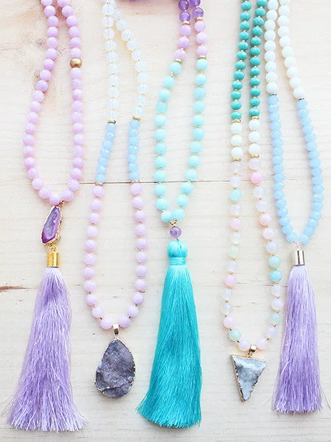 Pick from many handcrafted beautiful necklaces made from real natural gemstones & druzys such as Malaysia Jade, moonstones, agate crystals & much more! Necklaces measure from 34"-48" inches long.