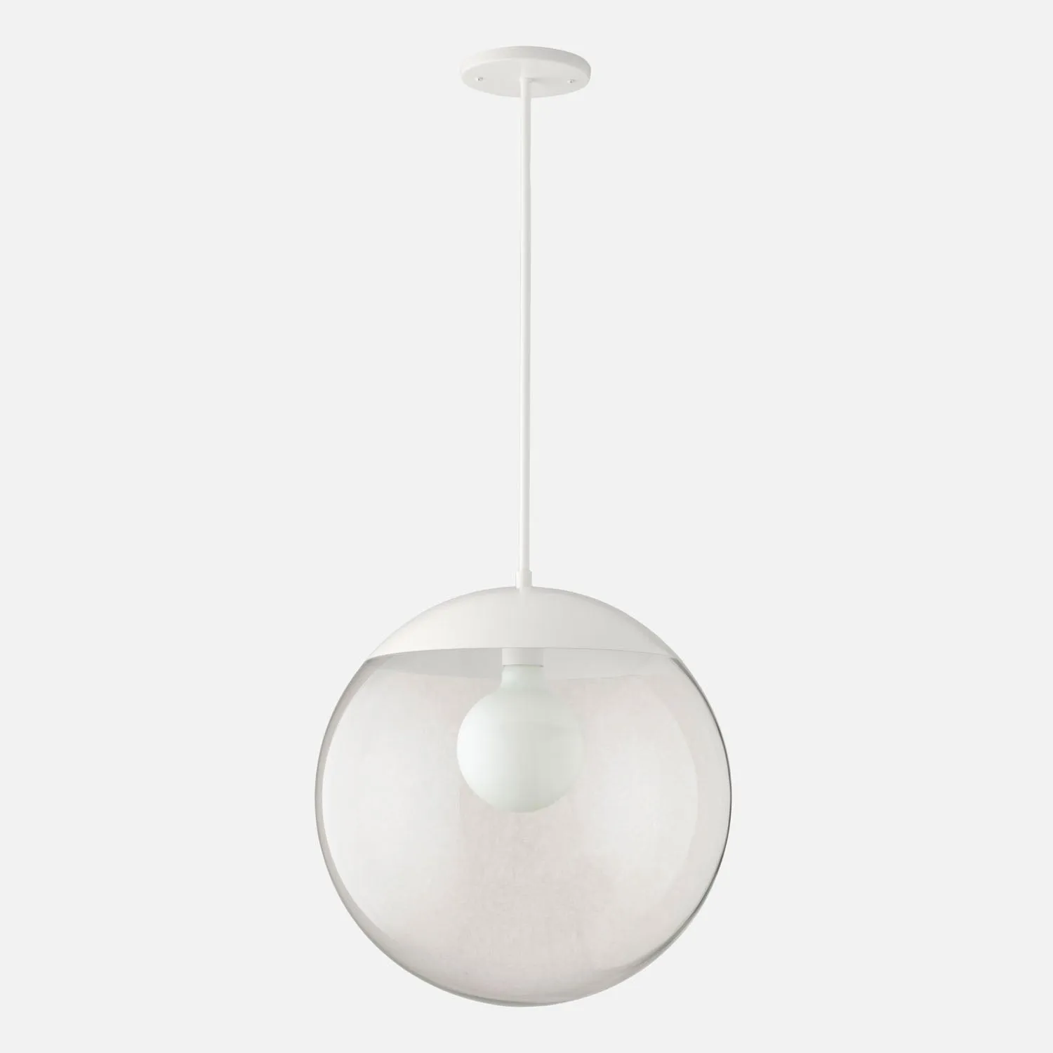 Pared down to the most basic elements of line and light, the Luna Collection has a voluminous, sculptural quality that illuminates a room even when unlit. Functional when grouped as pendants or solo as a chandelier, the Luna Pendant comes with a circular shade in clear glass and offers a moon-like glow. A low-profile canopy and minimalist rod help the fixture maintain its striking simplicity. Assembled in our Portland, Ore. factory using ethically-sourced domestic and global components. A Schoolhouse Original.