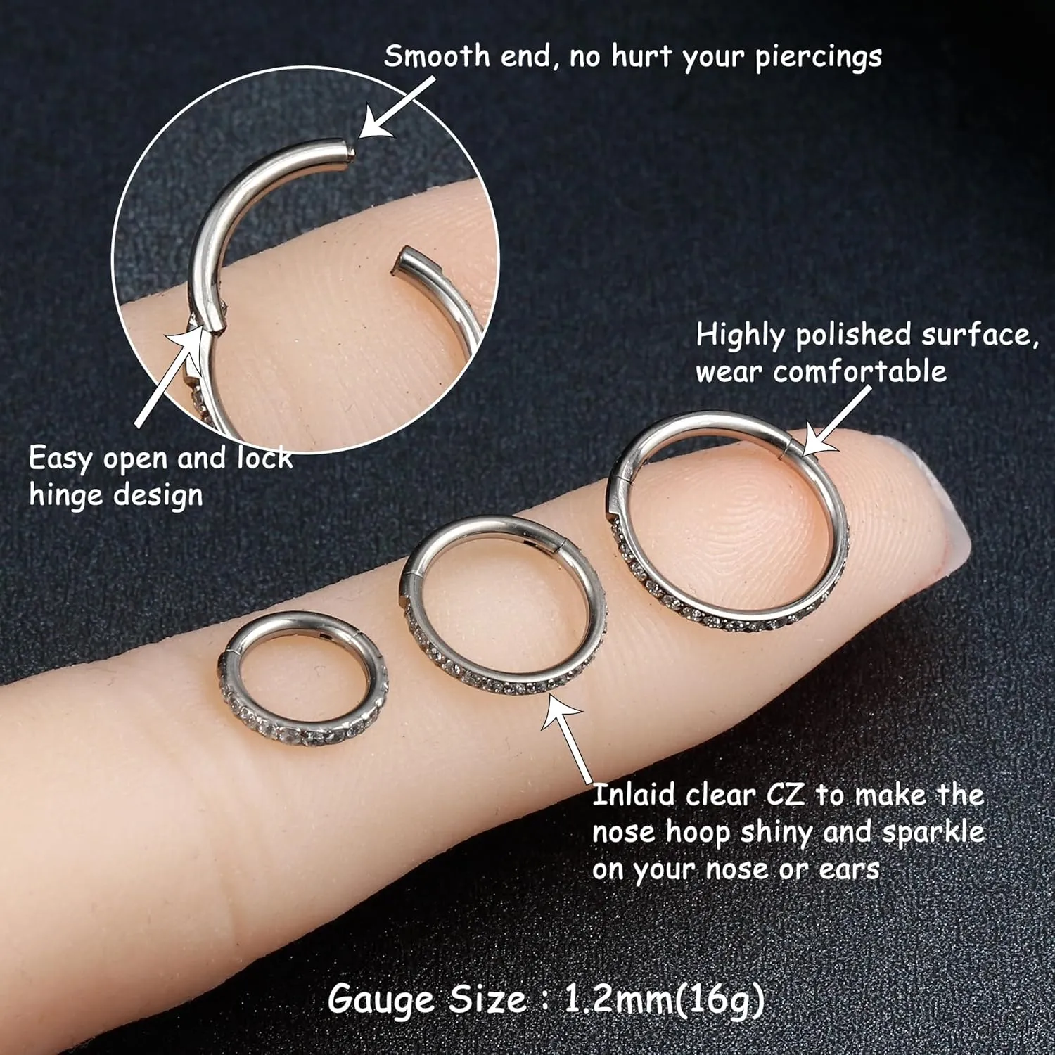 - Exquisite Craftsmanship's Clasp : Titanium nose rings clasp was carefully polished and refined to ensure smooth edges, not hurt your piercings. Clasps feature a secure connection to ensure a strong bond with the nose ring, keep it staying tight on your nose or ears, hardly not loosening or falling off