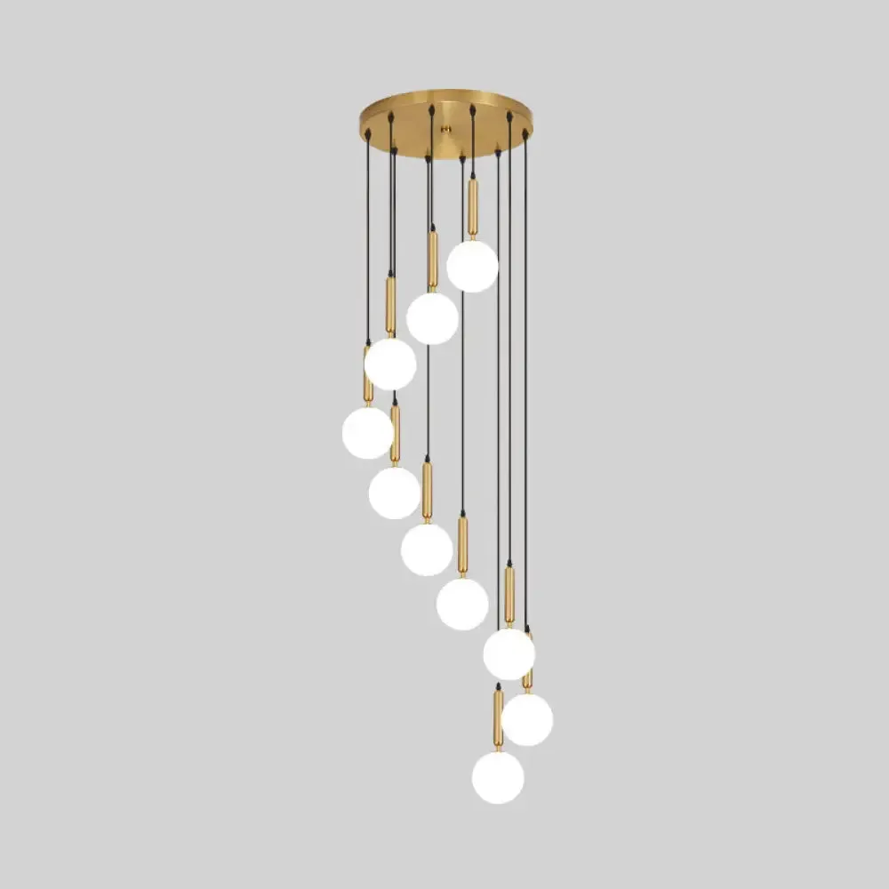 The product's size is 25" and above. The fixture width is 10", 12", 14", 16", 18", and the fixture height is 52". The chain or cord length is 39.5", 31.5", and 35.5". The shade height is 7.5". The bulb is not included. The color is brass and black. The number of lights is 3, 4, 5, 6, 8, or 10. The canopy shape is round. The style is modern. The material is glass. The fixture type is with shade. The feature is contemporary. The voltage is 110v-120v or 220v-240v. The bulb base is E26/E27. The light type is LED, incandescent, or fluorescent.