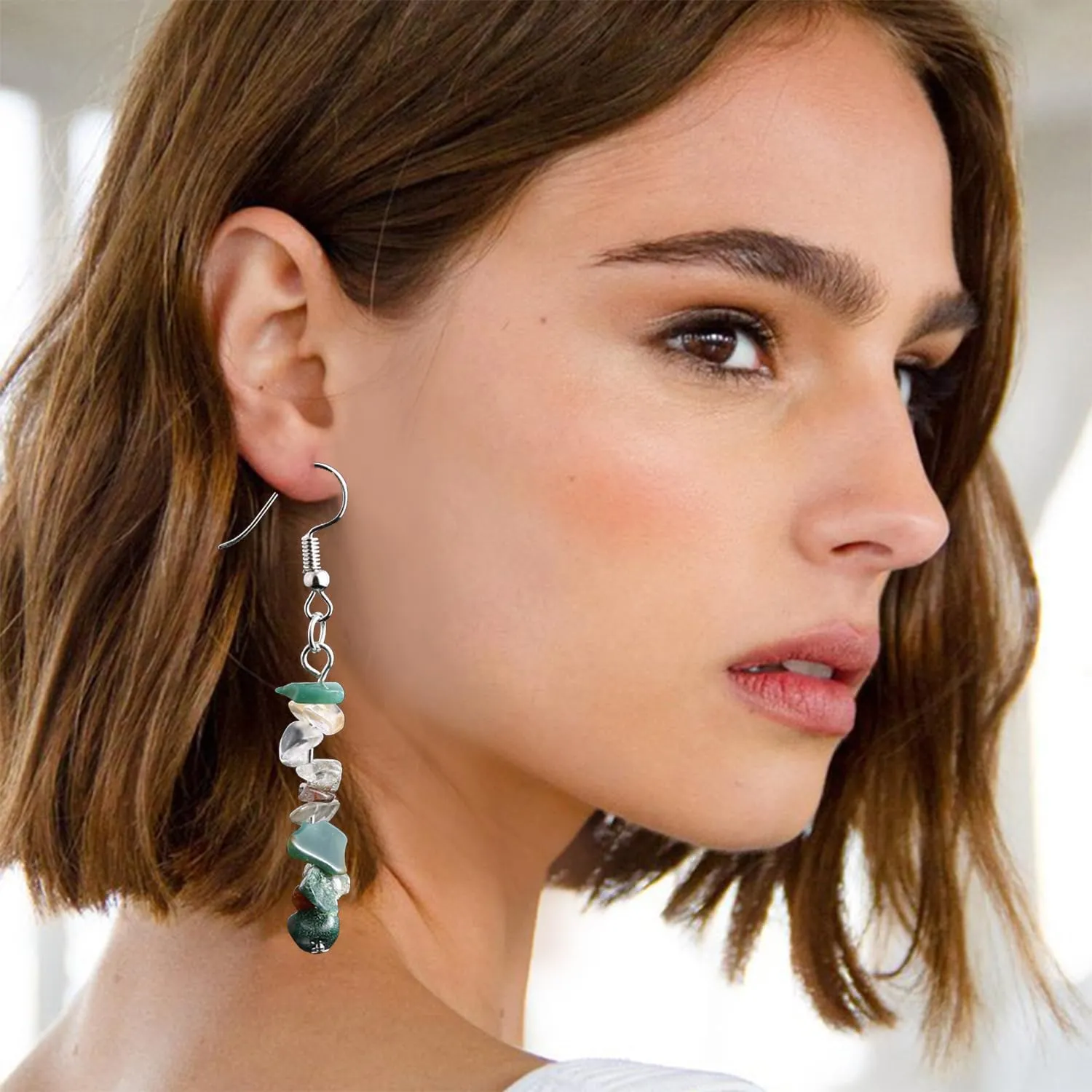 - Handmade Bohemian Vintage Colorful Chips Crystal Tumbled Stone Beads Long Drop Hook Earring Chakra Jewelry for Women Men Statement Jewelry