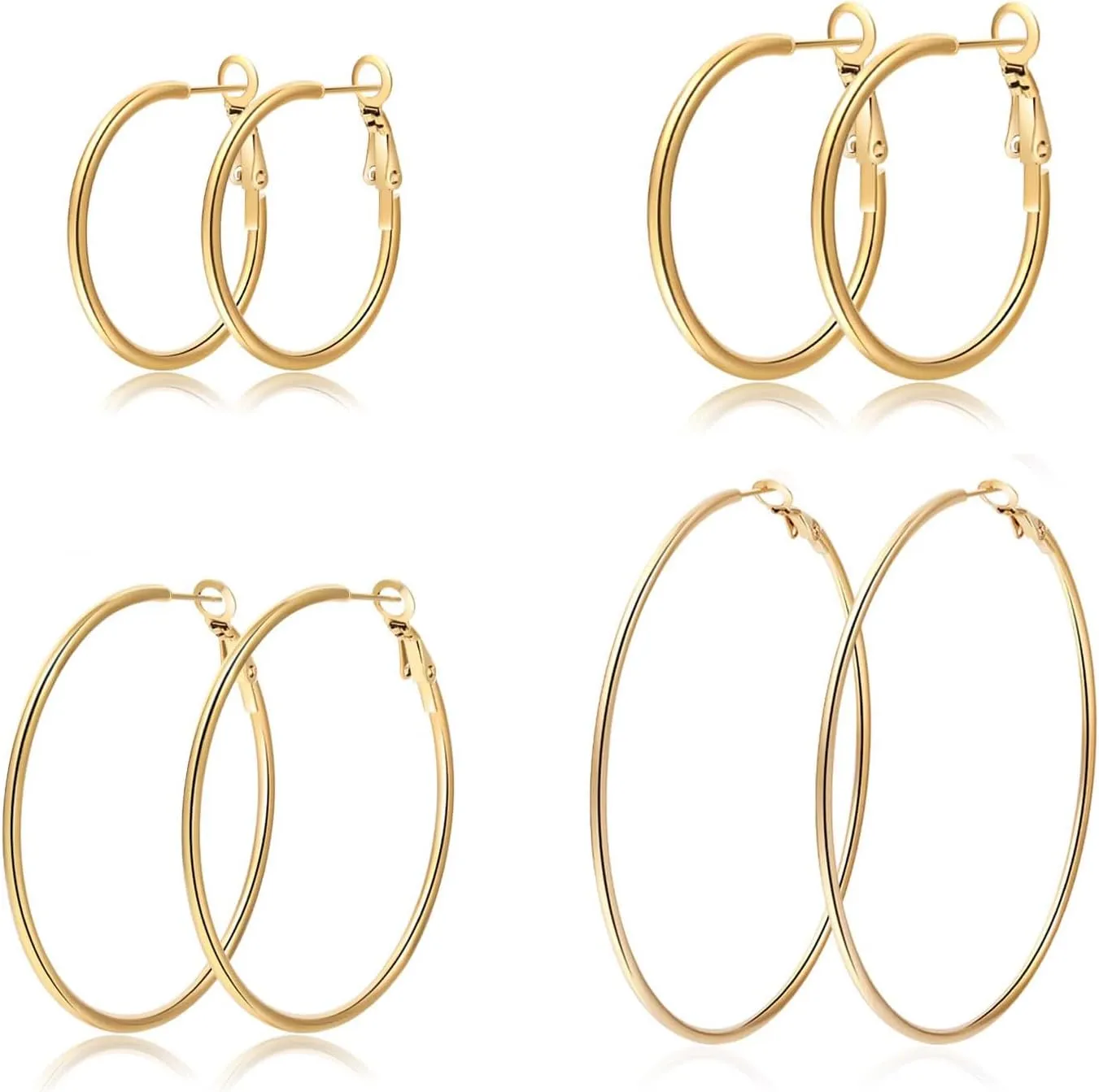 - Gold Hoop Earrings Set: One order includes 4 Pairs different size of gold hoops earrings for women .These big gold hoops are really sophisticated and simply gorgeous,which can enrich your collocation, and meet your various occasions and wearing needs,you could share this gold earrings set with your Family & Friends.