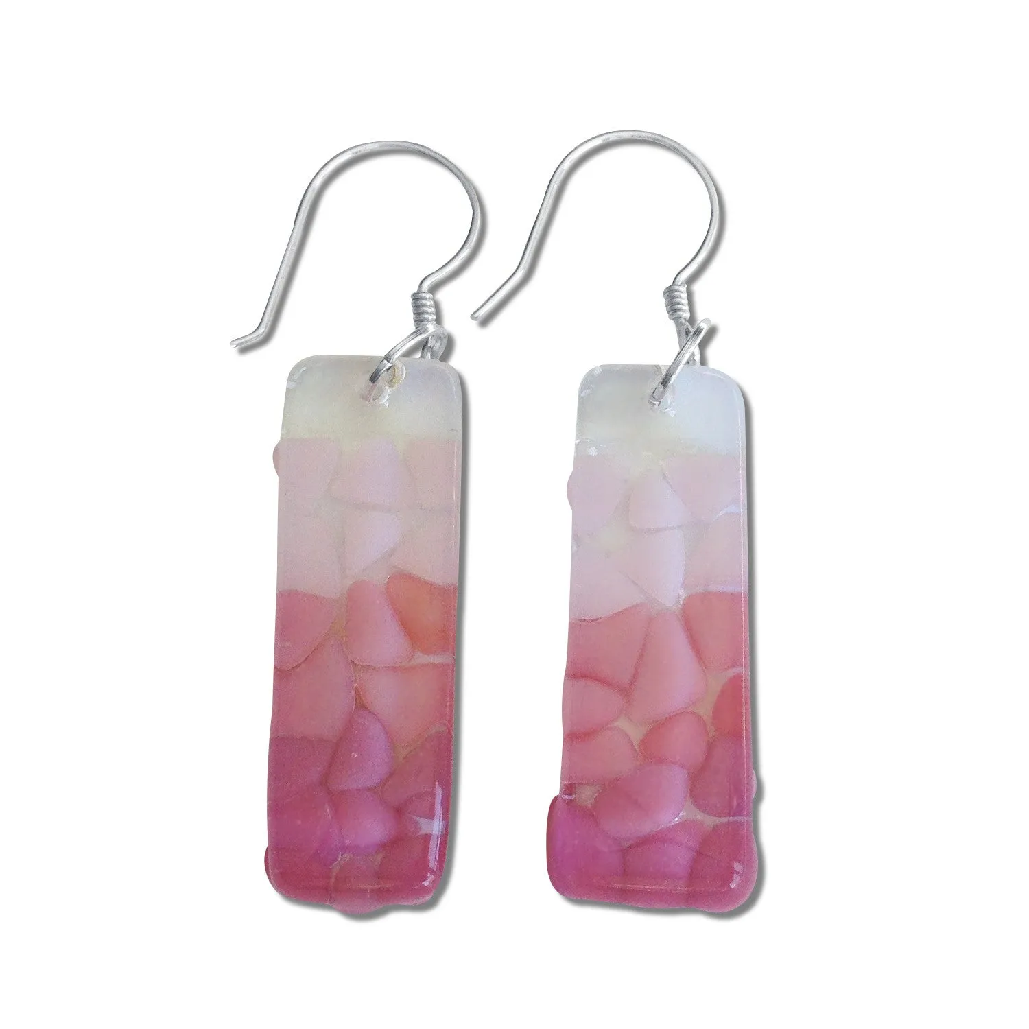 Made with Fused Glass. Ear wires are Sterling Silver. Approximate measurements: 1 3/8" (3.3 cms) long by 1/2" (1.1 cms) wide. Approximate weight: .33 oz for both earrings.