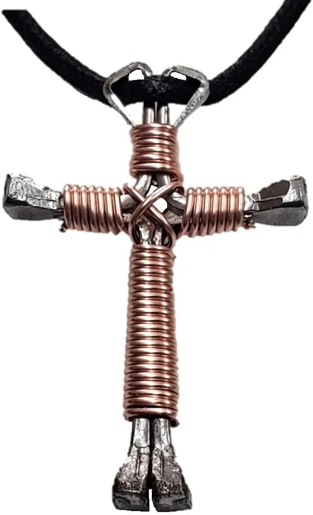 New Powder Puff horseshoe cross necklace. They are professionally handcrafted out of 4 genuine horseshoe nails and color-coated wire, cord. The necklaces comes to you ready to wear with an adjustable black cord. Crosses are stylish and well made. These are Great for any occasion, Gifts for Easter, Birthday, Christmas, VBS, Church Groups and etc. Adults and all ages love them and are worn by male & female. Each necklace is actually handcrafted by the artist and individually packaged with card inside. They are also available in a variety of colors. So if you don't see a color or design you want just message me what you are looking for. Each cross made of 4 horseshoe nails, Wrapped with 20 Gauge colored wire, , Cross approx. 1 3/4" height x 1 1/4" width. Have black adjustable cord, Each one will be individually packaged with a card inside. By Show Me Country