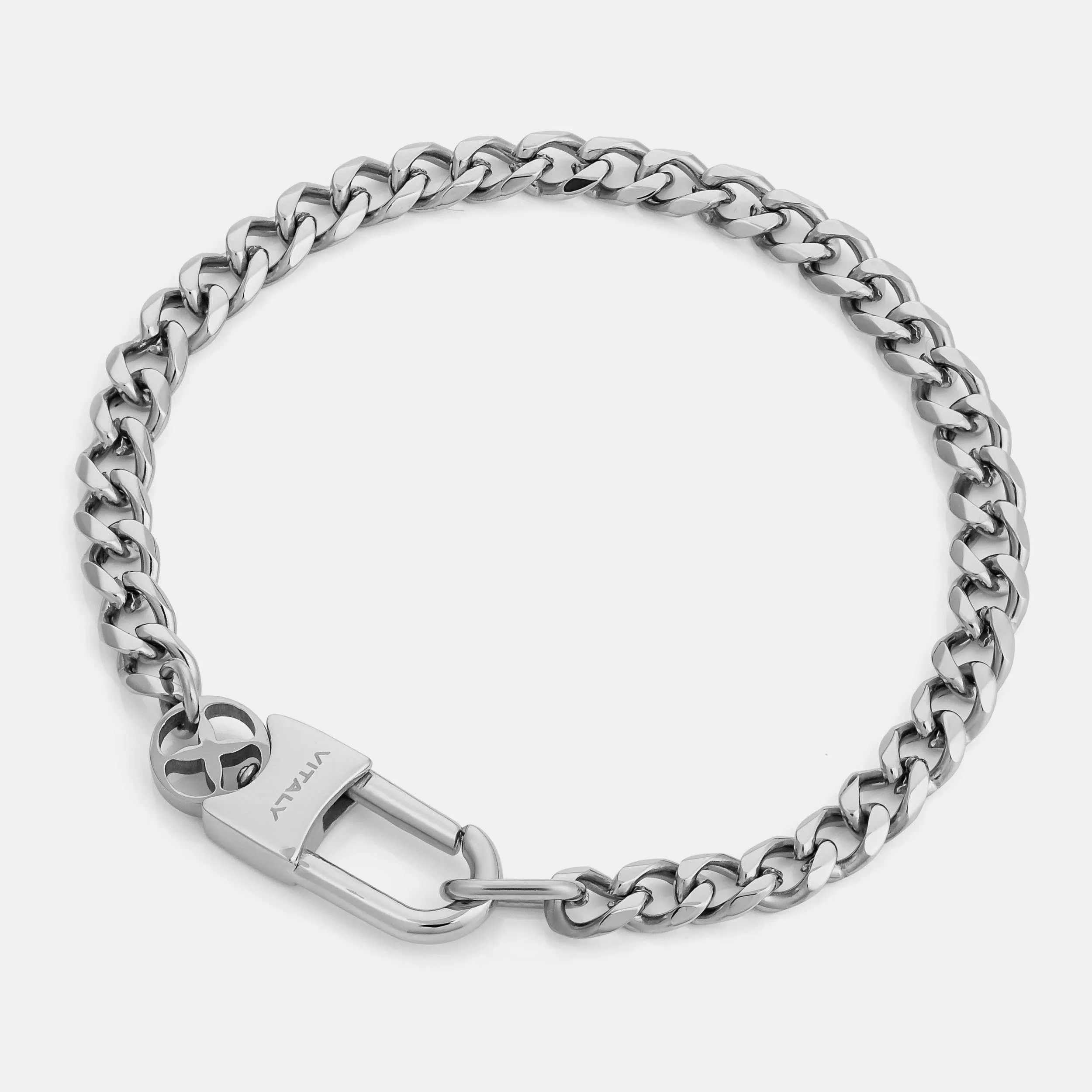 TheProgramis a low-profile braceletcomposed ofsleek Cubanchain links. Finished with our signature Glyph carabiner clasp.Can be worn on its own or layeredwith other bracelets.