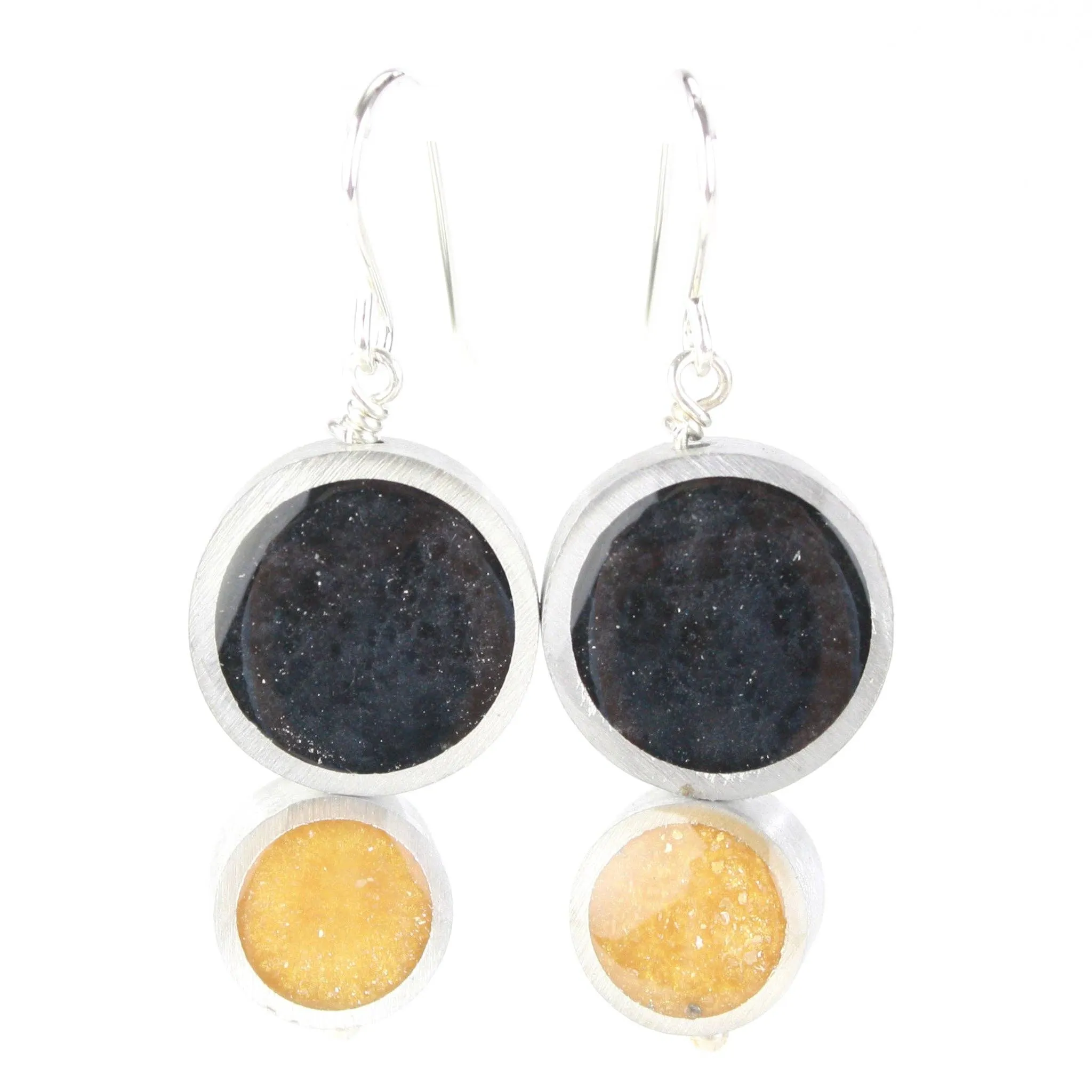 Add a burst of color and style to your look with our vibrant double circle earrings. Crafted from resin and lightweight aluminum, these unique colorful accessories combine contemporary charm with classic style. Handcrafted for perfection, their playful yet sophisticated design ensures a comfortable fit for any occasion. Elevate your ensemble and shop our colorful double circle earrings today. Largest circle measures 5/8" dia and all ear wires are steling silver.