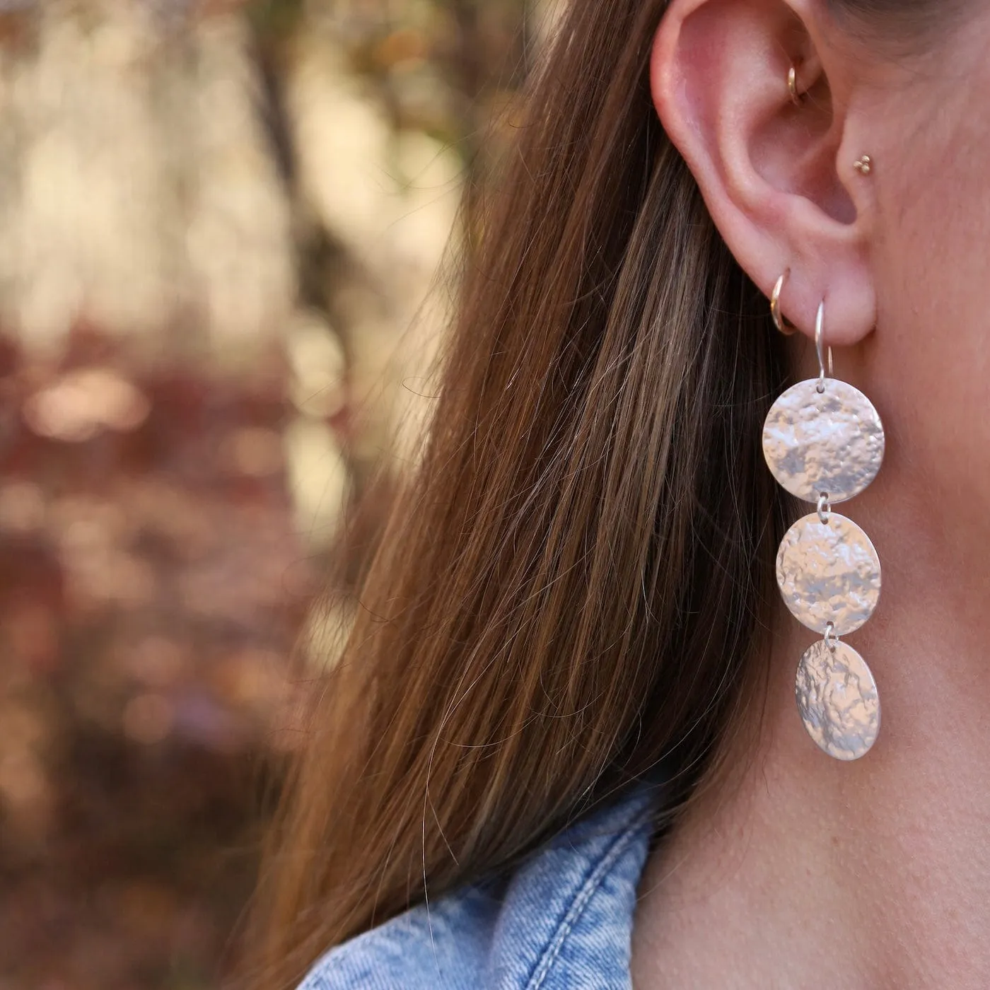 Introducing our Triple Silver Coin Earrings - the perfect addition to your jewelry collection! These earrings are versatile, stylish, and perfect for any occasion. Elevate your look with these stunning coin earrings today.